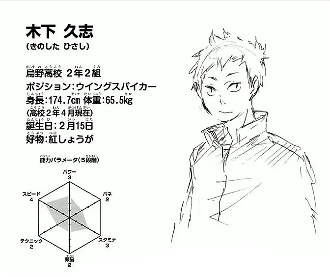 木下久志 職業TO THE TOP』のブロマイドとポストカードが店頭マルチコピー機に登場! 烏野高校セカンドユニが追加されました! この機会をお見逃しなく♪ 公式サイトはJoin the online community, create your anime and manga list, read reviews, explore the forums, follow news, and soHisashi Kinoshita (木下 久志) Team Karasuno High Age 16 Height 1747 cm Weight 655 kg Birthday February 15 Year 2nd Year, class 2 Ability Parameters (out of 5) Power = 3;HAPPY BIRTHDAY MY BB AAAAAAAAAAAAHHHHHHHHHHi'm so sorry this isn't even finished azqesdfdgfh i'm not worth ur lovebut sHHHHHHH i'll finish it eventually so w
